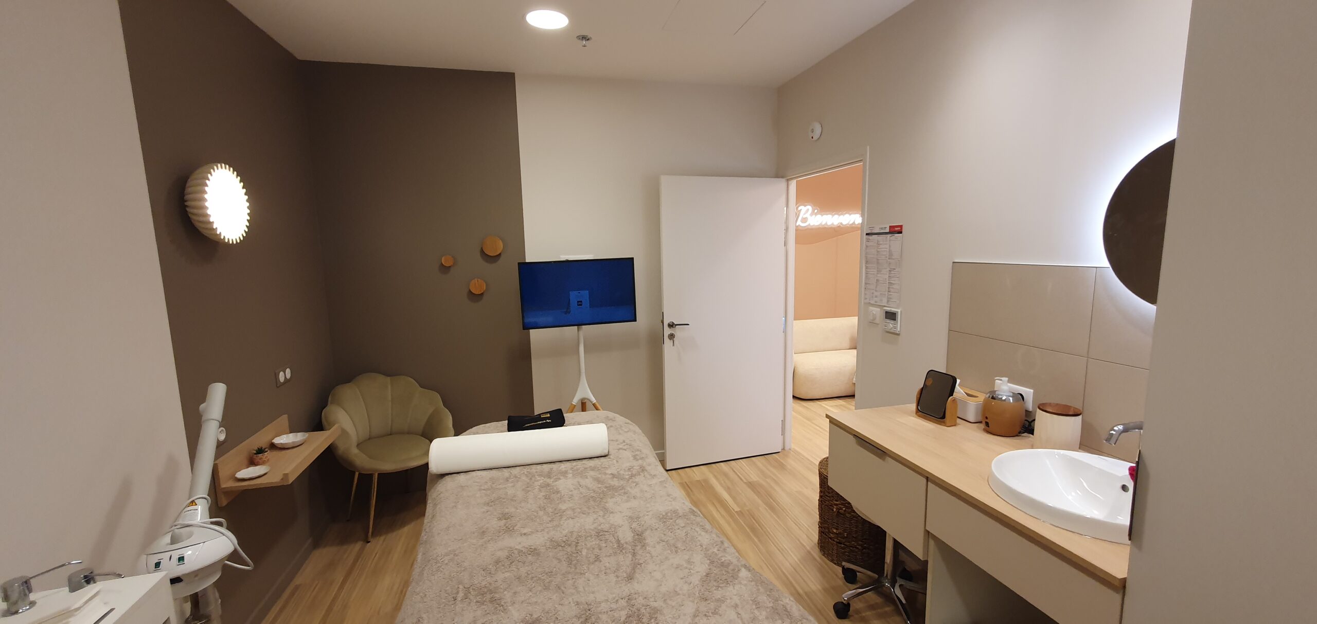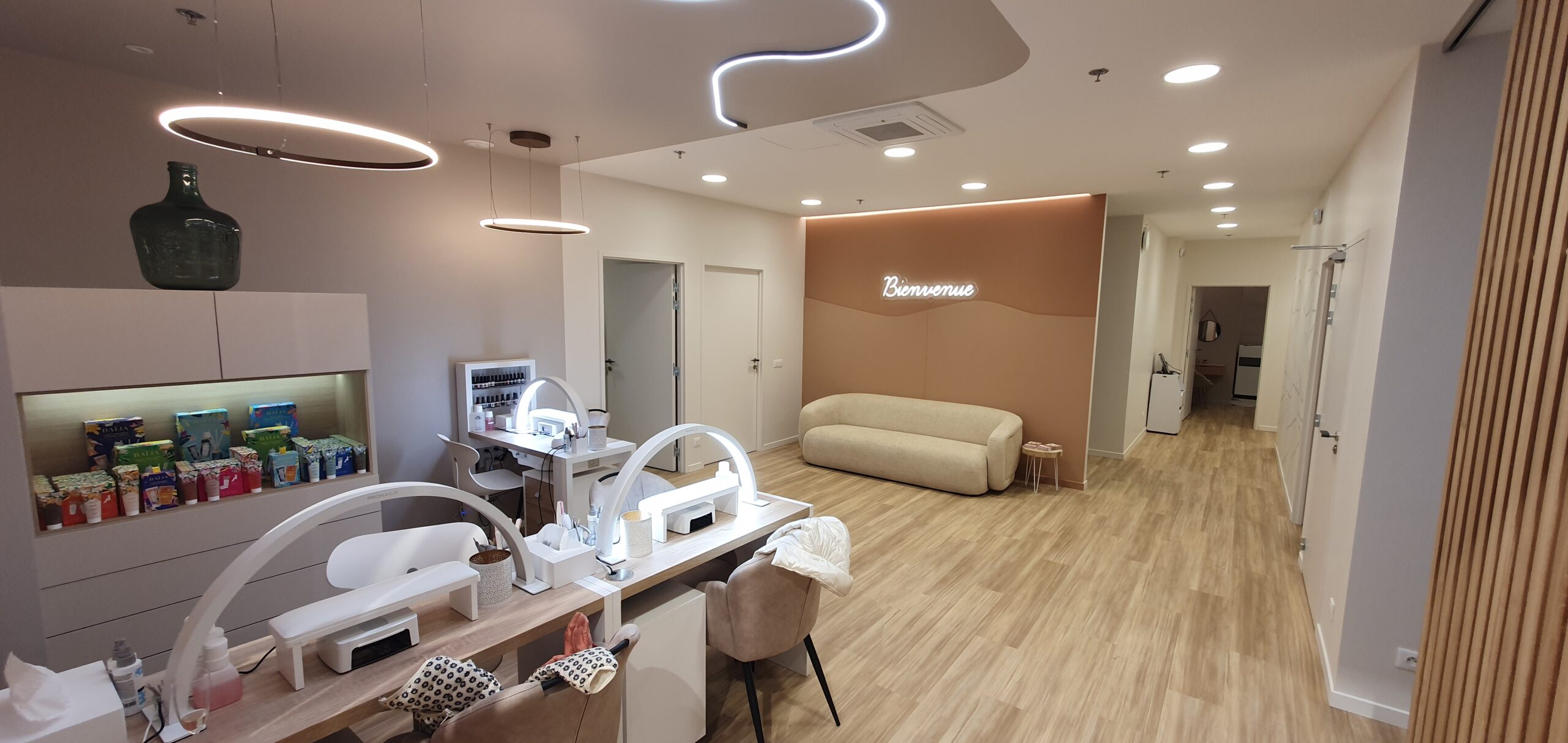 En plein cœur d’un centre commercial très fréquenté, la Maitrise d’Ouvrage nous a confié une mission de conception dans le cadre du réaménagement global d’un institut de beauté pour lui donner une nouvelle image et répondre aux besoins de sa clientèle. Après un audit détaillé sur site, les enjeux étaient les suivants : repenser l’organisation des volumes en intégrant les besoins spécifiques de chaque zone pour permettre un parcours client défini et une utilisation plus ergonomique de son personnel ; mise en place d’une identité visuelle autour de trois grands axes à savoir une association de matériaux et de couleurs traduisant l’élégance et l’harmonie, l’emploi de formes organiques et le travail de la lumière artificielle. Les volumes sont pensés pour durer ou évoluer dans le temps et s’adapter au mieux à une clientèle en mouvement. La nouvelle façade, point de départ de l’expérience client, témoigne de contraintes techniques importantes, tant d’un point de vue structurelle que mise en œuvre en site occupé.