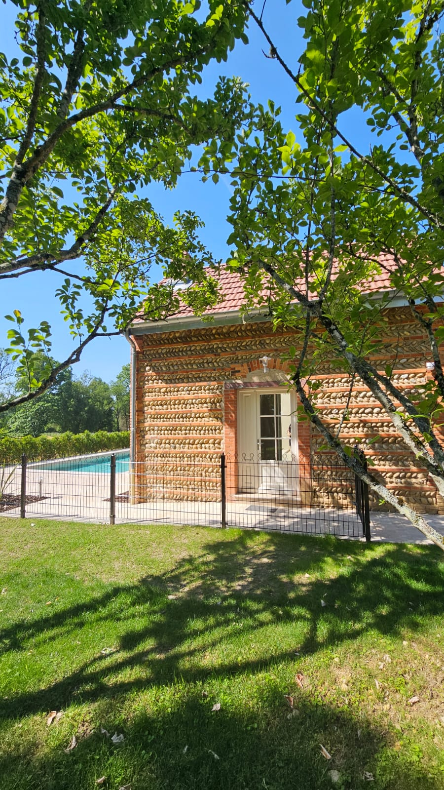 Après la rénovation complète de la maison principale en 2023, le client nous a de nouveau fait confiance pour la réhabilitation des deux dépendances dans ce parc naturel au cœur des Dombes. Le projet a inclus la transformation d’une bâtisse de 20 m² en poolhouse haut de gamme, pensée dans la continuité architecturale du cottage existant, avec douche, kitchenette, sanitaires et local technique piscine, utilisant des matériaux nobles et un design soigné. Un second bâtiment qui, à l’origine, était la maison du gardien, d’une surface de 130 m² a été entièrement restructuré et réhabilité, avec reprise complète des volumes et des réseaux, pour créer un espace destiné à la location saisonnière. L’ensemble des travaux a été réalisé en site occupé, avec organisation spécifique et accès provisoire pour les artisans, garantissant ainsi la continuité d’activité du gîte. Les extérieurs et le paysage ont également été retravaillés avec l’intégration paysagère d’une piscine, de terrasses et d’un ravalement complet des façades, afin de redonner cohérence et lisibilité à l’ensemble du domaine.